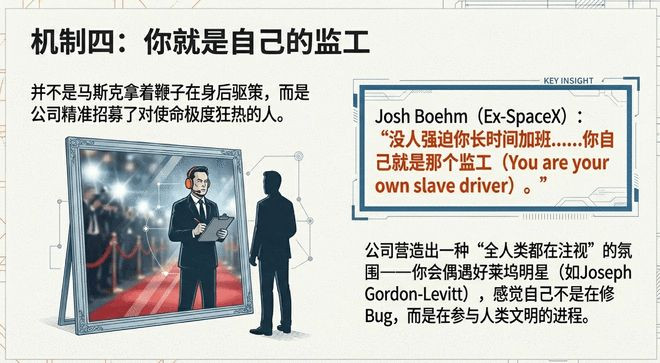 “没人强迫你长时间加班,”博姆说,“公司只是精准地招募了那群对使命极度狂热的人。为了把火箭送上天,你自然会选择睡在办公室。”