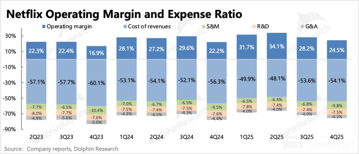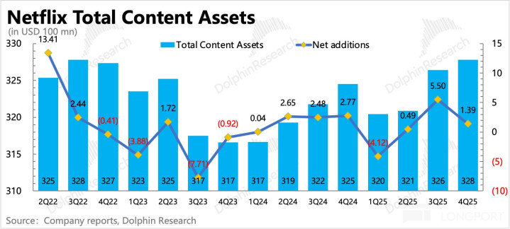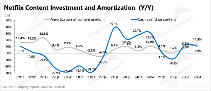 Netflix 透露 2026 年的内容投入规模将相比 2025 年增加 10%,也就是大约 195 亿左右。但考虑到因收购 WBD 而带来的利息负担和现金流压力,我们认为今年实际内容投入可能也会如去年一样有所控制。