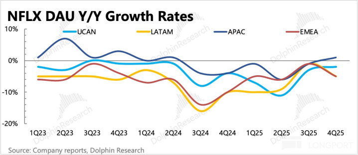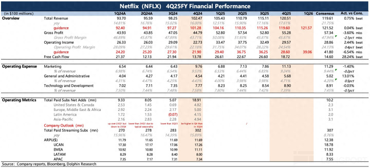 1. Q4 超预期:财报好的一面是已过去的四季度表现不错,收入、利润均超出预期(存在剩余巴西税费延至 26 年补缴带来的扰动),且本身存在加速增长的良好趋势,主要得益于四季度《Stranger Things》最终季的热播。