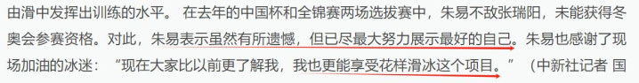 可即便落选了这届冬奥,朱易也并没有因此颓废。