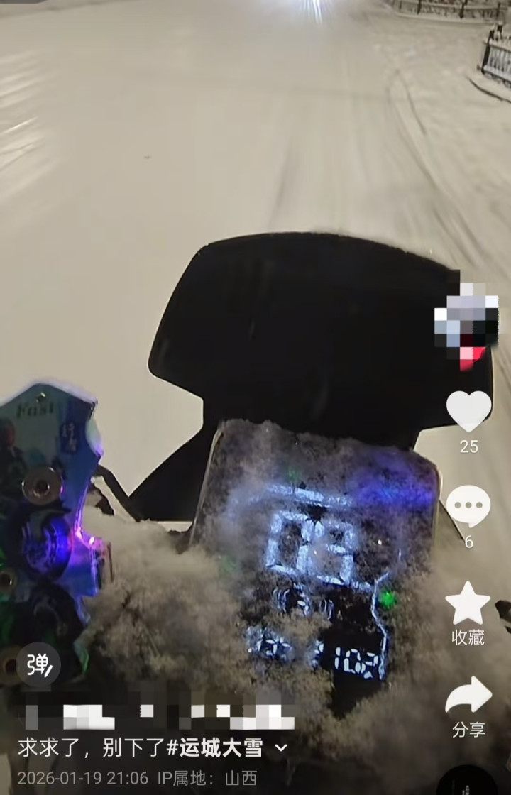{jz:field.toptypename/}一名IP属地河南的骑手在社交平台发帖称:“送了五公里单,雪天路滑,车摔了,人飞了,手机也出走了……”配图可见其头部落满雪花,眼镜一侧被雾气覆盖。该骑手告诉九派新闻,因雪天骑行慢,车和人都基本没事,“平台有给出补贴,每单约多给一块钱”。