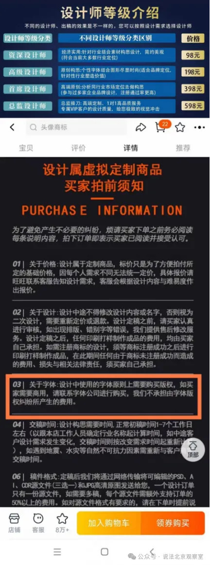 作为专业设计机构,本应对字体版权归属具备清晰认知,却在未告知消费者的情况下擅自使用侵权字体,事后又以格式条款逃避责任,这种“挖坑”式服务引发消费者强烈不满。