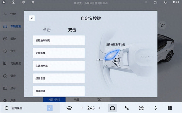 细节配置的打磨让用车体验更趋完善,且各项功能调用便捷。新增的Alive动态壁纸能随车速、电量、挡位实时变化,让座舱更具生命感;液晶仪表新增导航红绿灯倒计时、电池电量百分比显示,HUD抬头智显补充了巡航红绿灯倒计时、绿波车速、目的地剩余里程与时间等实用信息,让行车关键数据一目了然。车控车设方面,优化了RPA泊车辅助这一辅助功能,方向盘自定义按键新增双击指令,同时支持氛围灯亮度调节与地图导航音量记忆,每一项功能都无需复杂操作,即可快速适配个人使用习惯。