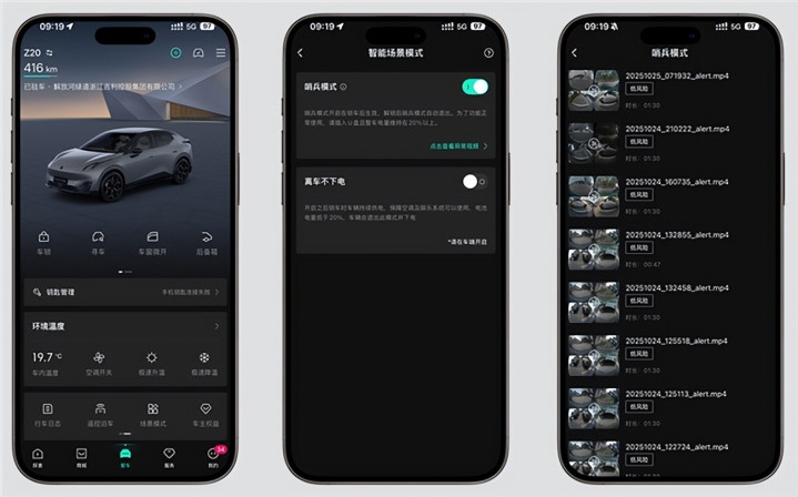 场景模式的优化让车机功能更贴合实际需求,且操作便捷无负担。新增的宠物模式堪称养宠家庭的福音,当车主临时离车且宠物留在车内时,开启该模式后,车辆会自动离车不下电、开启空调外循环,关闭小窗并屏蔽状态栏与任务栏,中控屏同步展示宠物关怀界面,全程无需复杂设置,为宠物构筑安全舒适的移动空间。升级后的哨兵模式在车辆异常触发监控后,会将视频按时间倒序排列并区分高、低风险类别,云端分别保留10条对应记录,更多视频可在车机内直接查看,为车辆安全提供全方位保障,操作简单易懂。