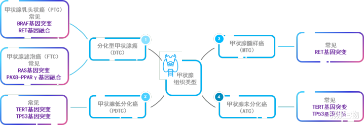 图2 甲状腺癌不同组织亚型常见基因变异类型