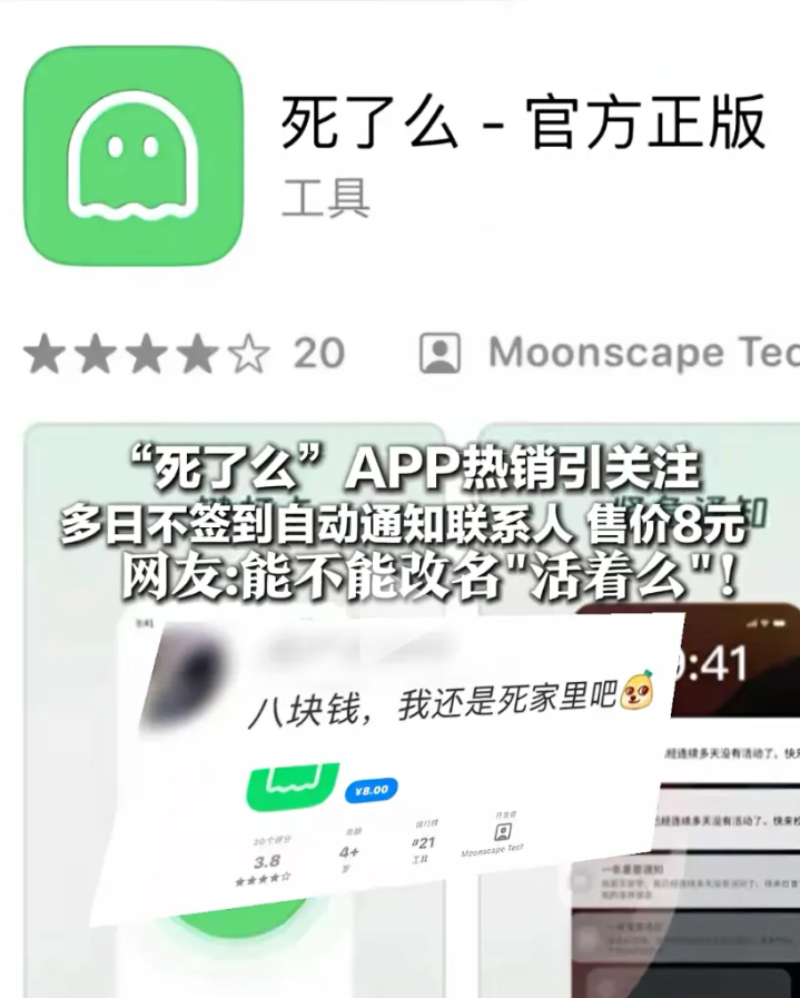 事情要追溯到几年前。当时,有人出了个主意:现在独居的人这么多,不如做个APP,每天打卡报平安。没想到几年后,这个APP,真被人做了出来,还收费8元。