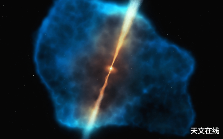 这幅插图描摹了早期天地中一个类星体周围的气体晕。图片起首:M.科恩梅瑟欧洲南边天文台